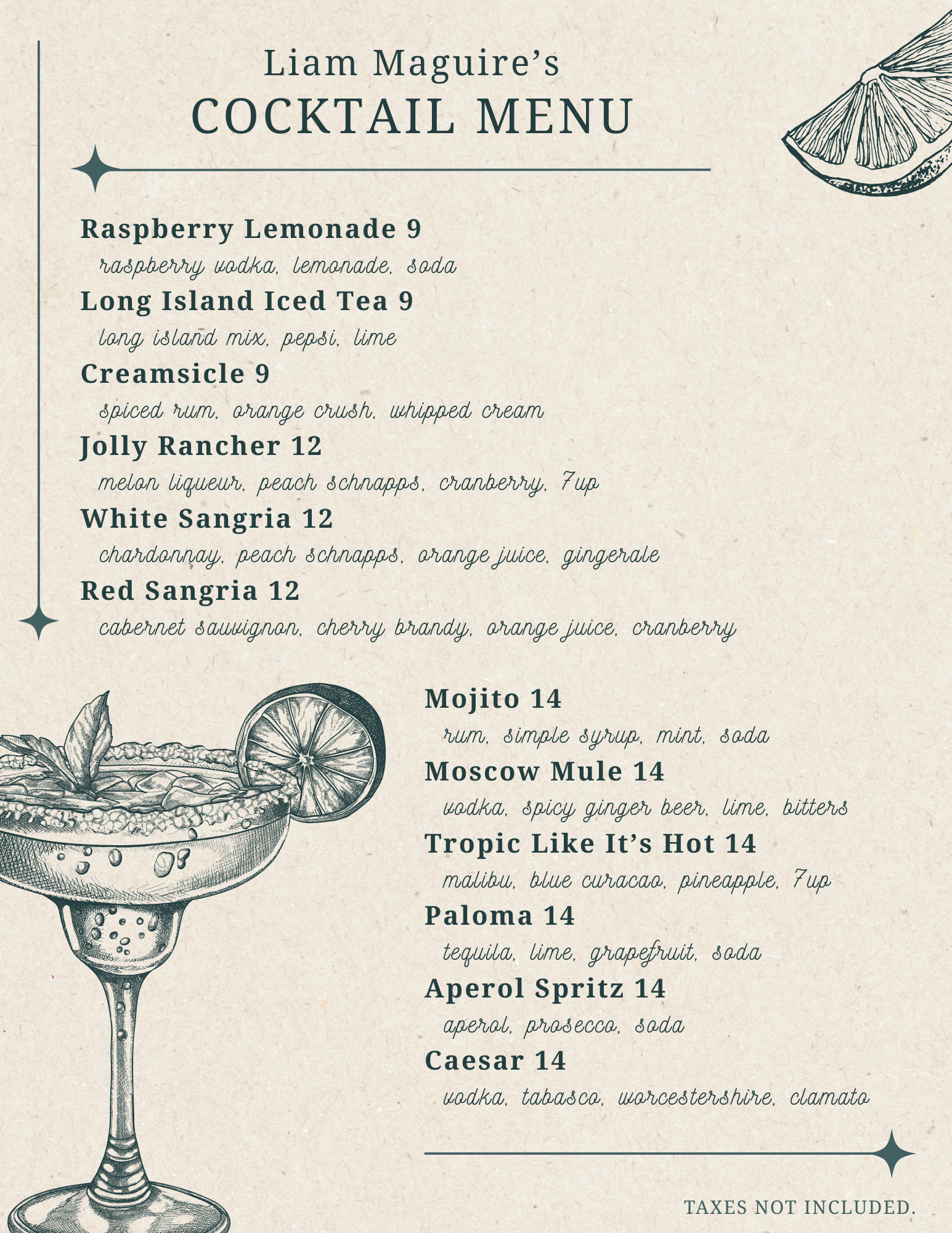 $6 / $9House red or white wine available as a 6oz or 9oz glass. Ask your server for current feature.
