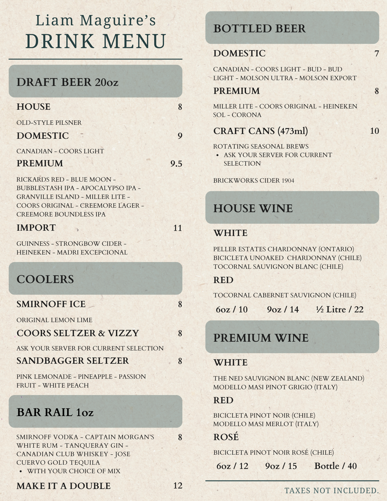 $6 / $9House red or white wine available as a 6oz or 9oz glass. Ask your server for current feature.